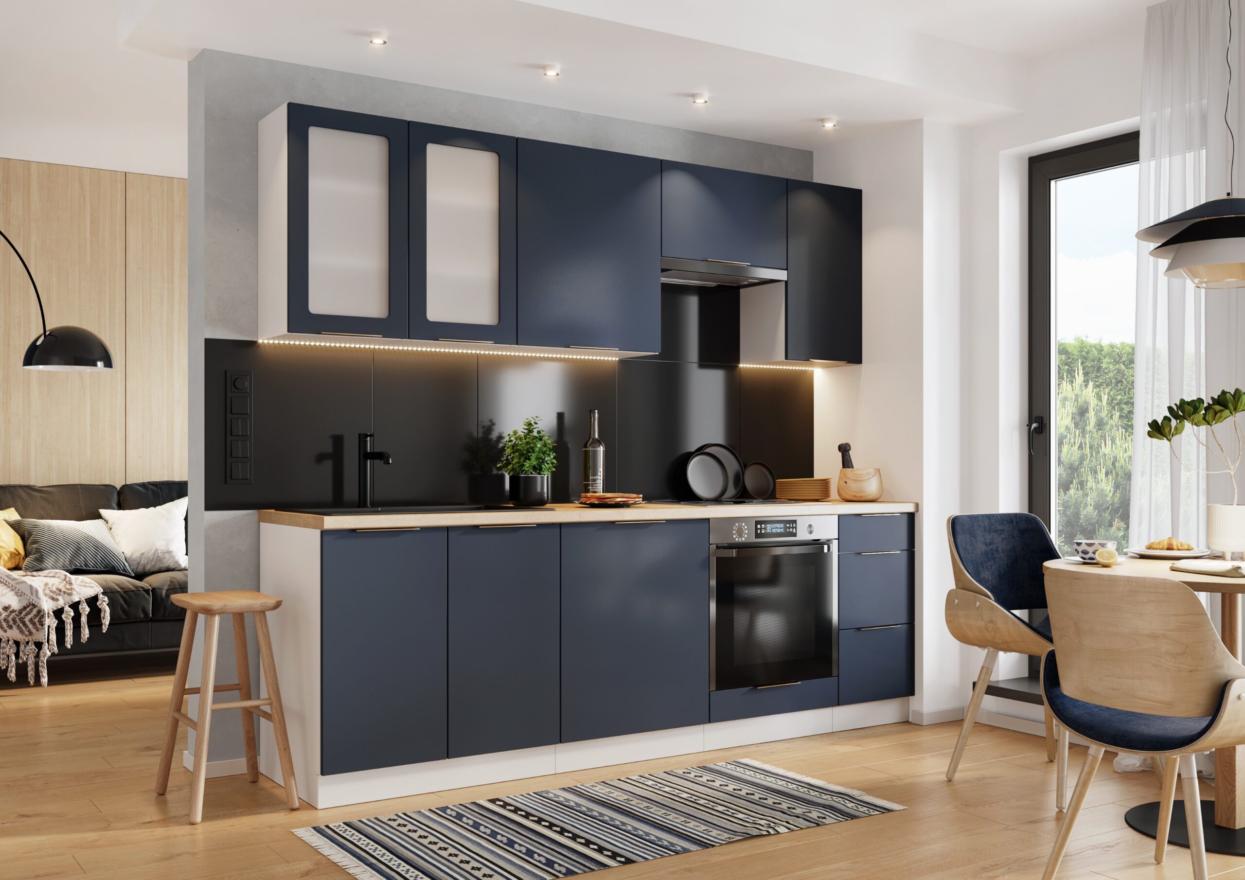 Küchenzeile „Denis“ – Modernes Design in Marinen Blau Matt von Trendline