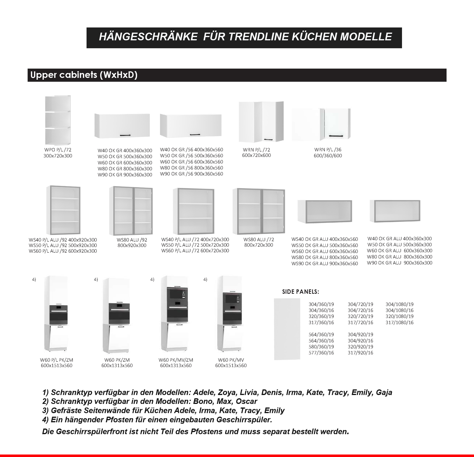 - Seitenpaneele für Unterschränke, Hängeschränke & Hochschränke